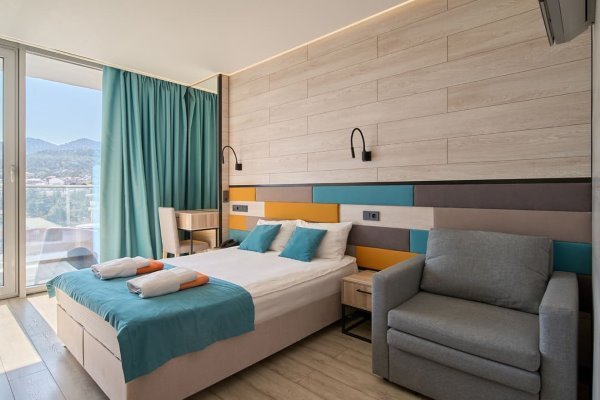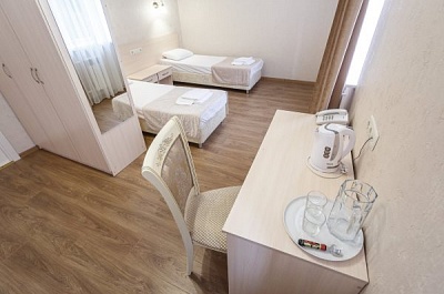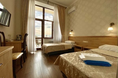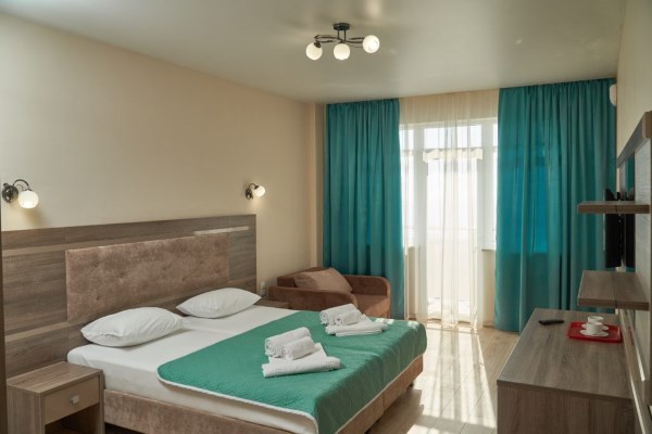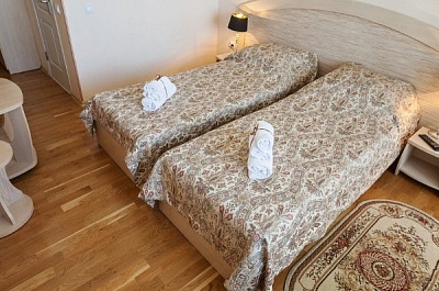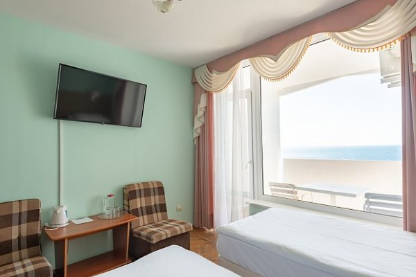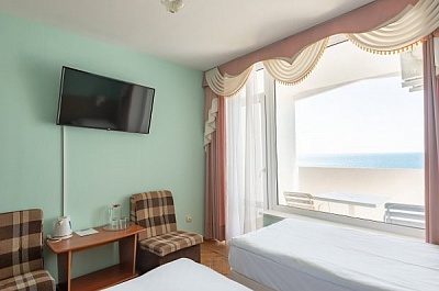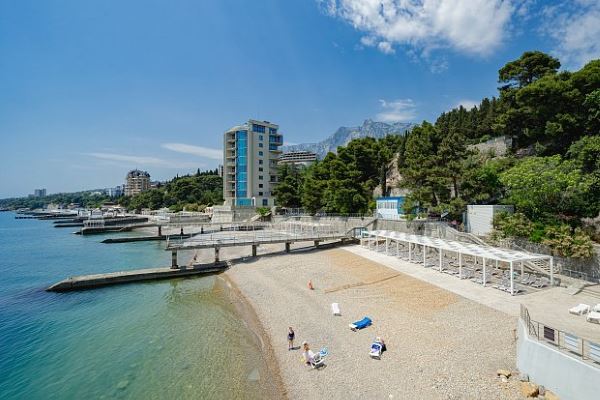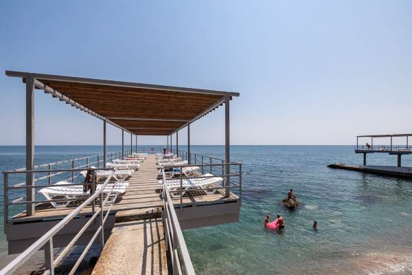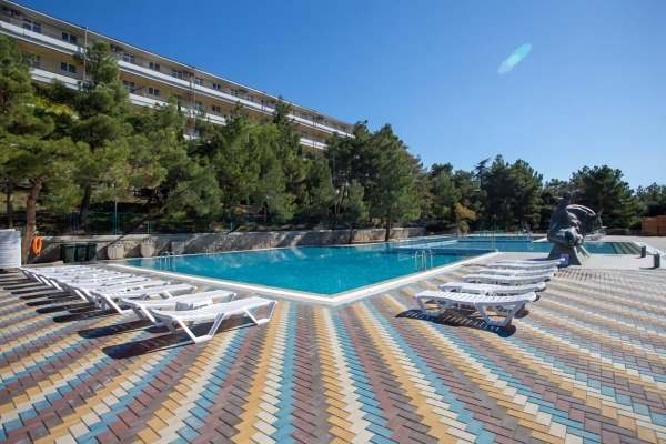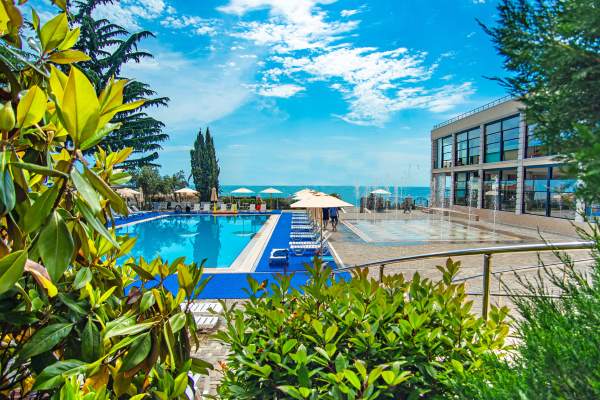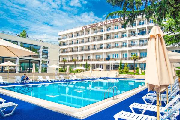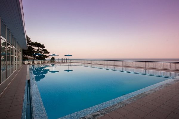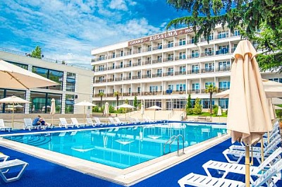 Главное преимущество отеля «Rusalma» — расположение на первой линии побережья Черного моря и наличие чистого галечного благоустроенного пляжа всего в нескольких метрах от отеля. Если не хочется на море, на территории отеля есть сверкающий открытый бассейн с подогревом, наполненный пресной водой, рядом с которым можно отлично позагорать на удобном лежаке. Пользование пляжными полотенцами, шезлонгами, навесами и душевыми входит в стоимость пребывания в отеле «Rusalma».